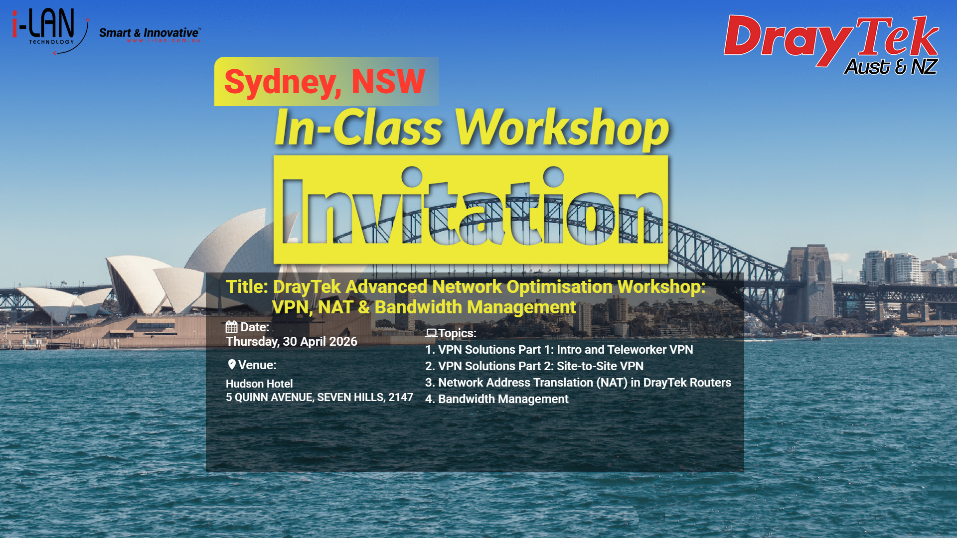 the upcoming DrayTek training workshop to be held in Sydney on 30th