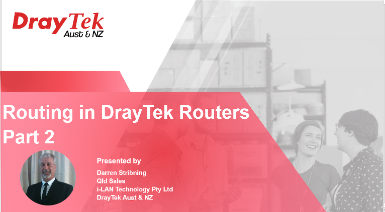 Upcoming Webinar Routing in DrayTek Routers (Part 1) Tuesday 7th July 2020 at 10:00 am (AEST) Duration 30 Minutes You are invited to attend our next webinar presentation where we will look at the topic: Routing in DrayTek Routers (Part 1). This is ...